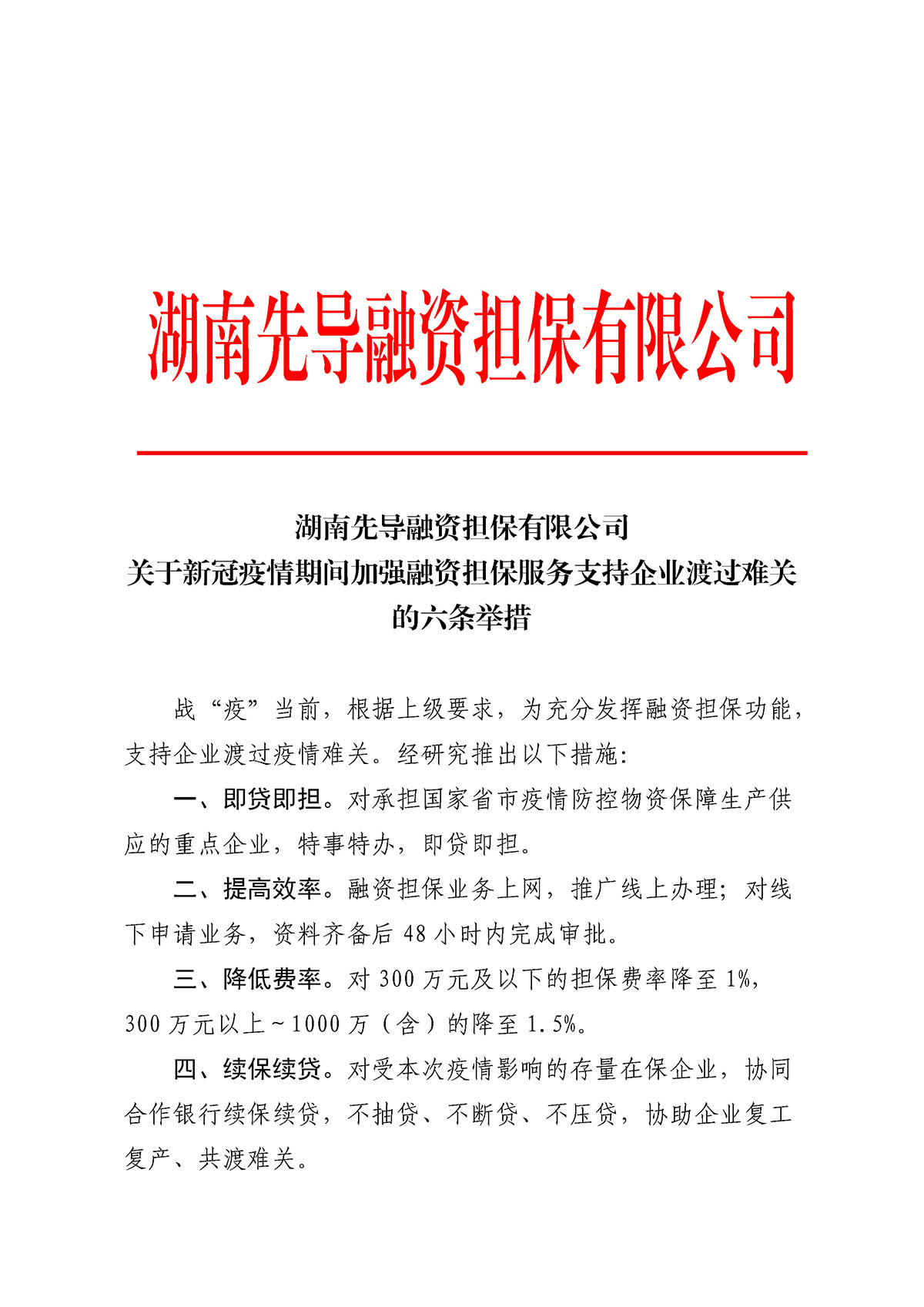 关于新冠疫情期间加强融资担保服务支持企业渡过难关的六条举措