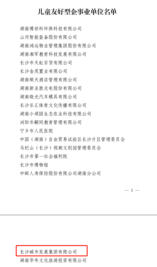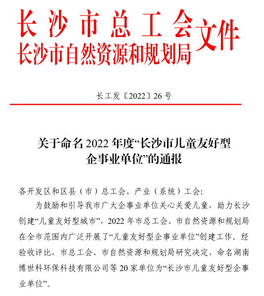 喜报!长沙888集团集团荣获2022 年度“长沙市儿童友好型企事业单位”称号