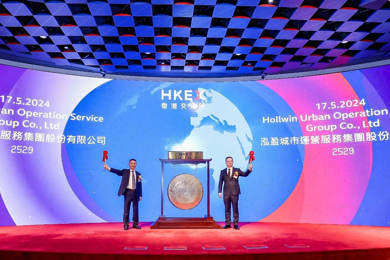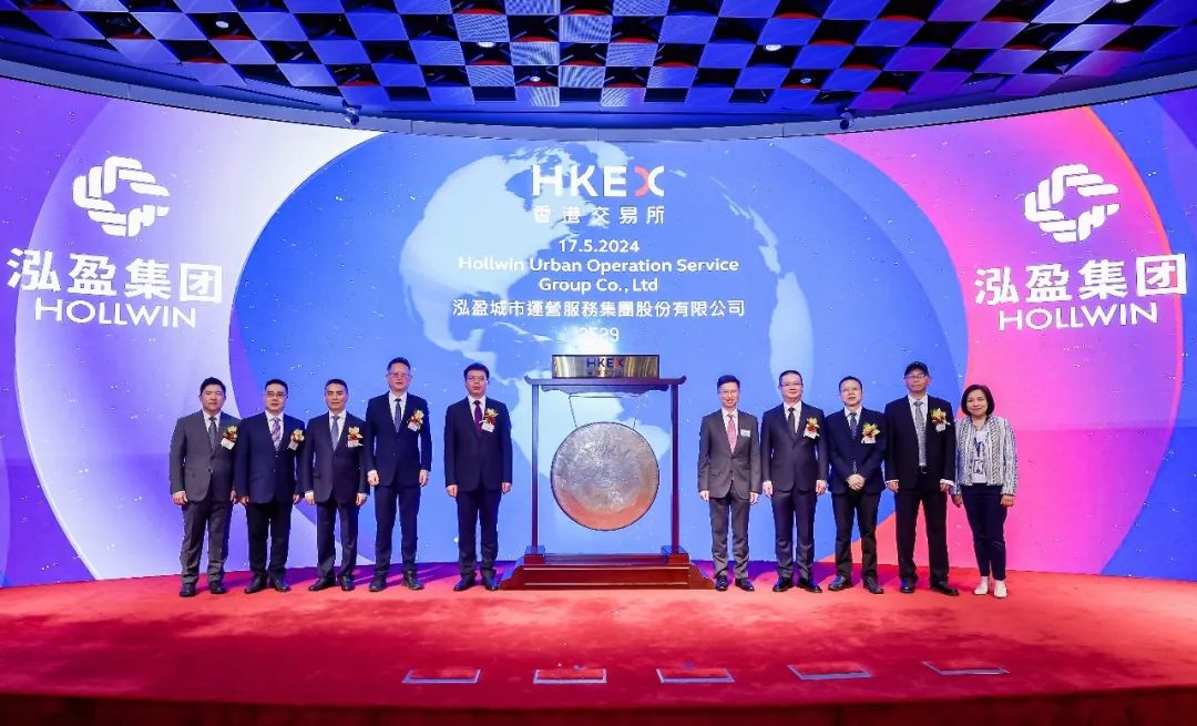? ? ? ? 2024年5月17日,泓盈城市运营服务集团股份有限公司(股票名称:泓盈城市服务,股票代码:2529.HK)在香港联合交易所主板挂牌上市。长沙市人民政府党组成员、副市长周志凯,长沙市人民政府国有资产监督管理委员会党委书记、主任黄阳,长沙市人民政府金融工作办公室党组书记、主任邱兵东,长沙城市发展集团有限公司党委书记、董事长邹春林出席上市敲锣仪式。