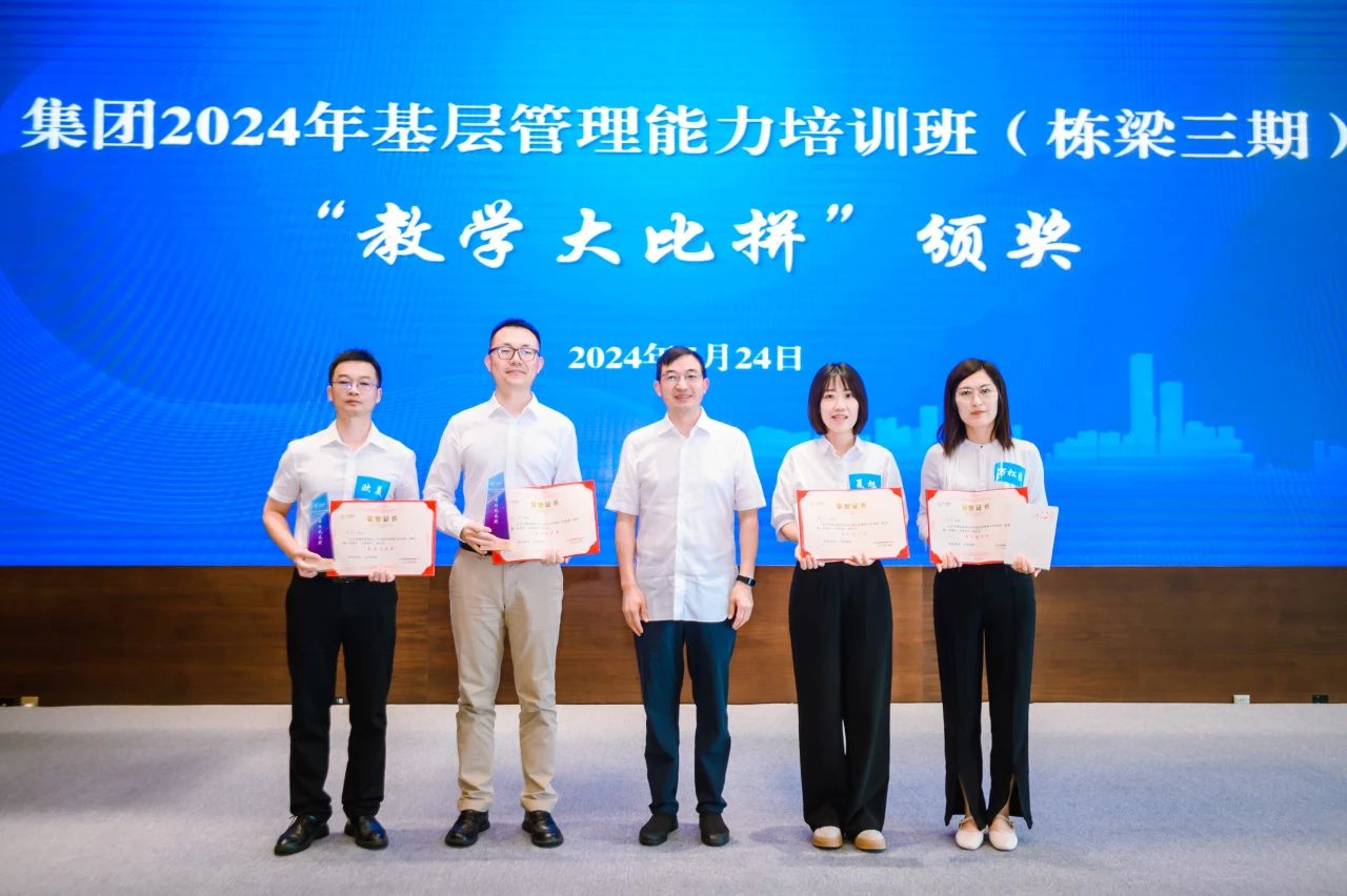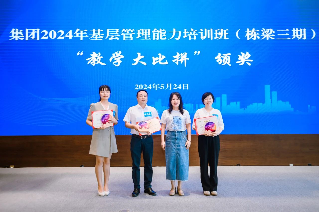 ? ? ? ??随后,本次培训班举行了“教学大比拼”成果汇报暨结业仪式,培训班内部导师出席。经前期初赛、复赛,共有5名学员代表进行最终汇报,他们围绕自我管理、业务管理、团队管理等方面进行了精彩的微课展示。导师们进行现场指导及点评,为培训班优秀学习团队、学习积极分子及“教学大比拼”获奖人员颁奖。