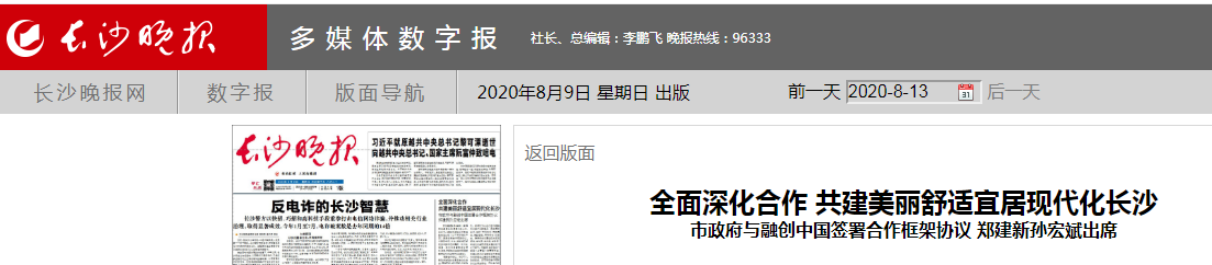 长沙晚报:长沙市政府与融创中国签署合作框架协议