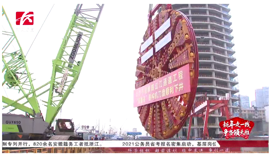 智慧长沙:新年走一线 争当领头雁丨湘雅路过江通道工程盾构机刀盘成功吊装