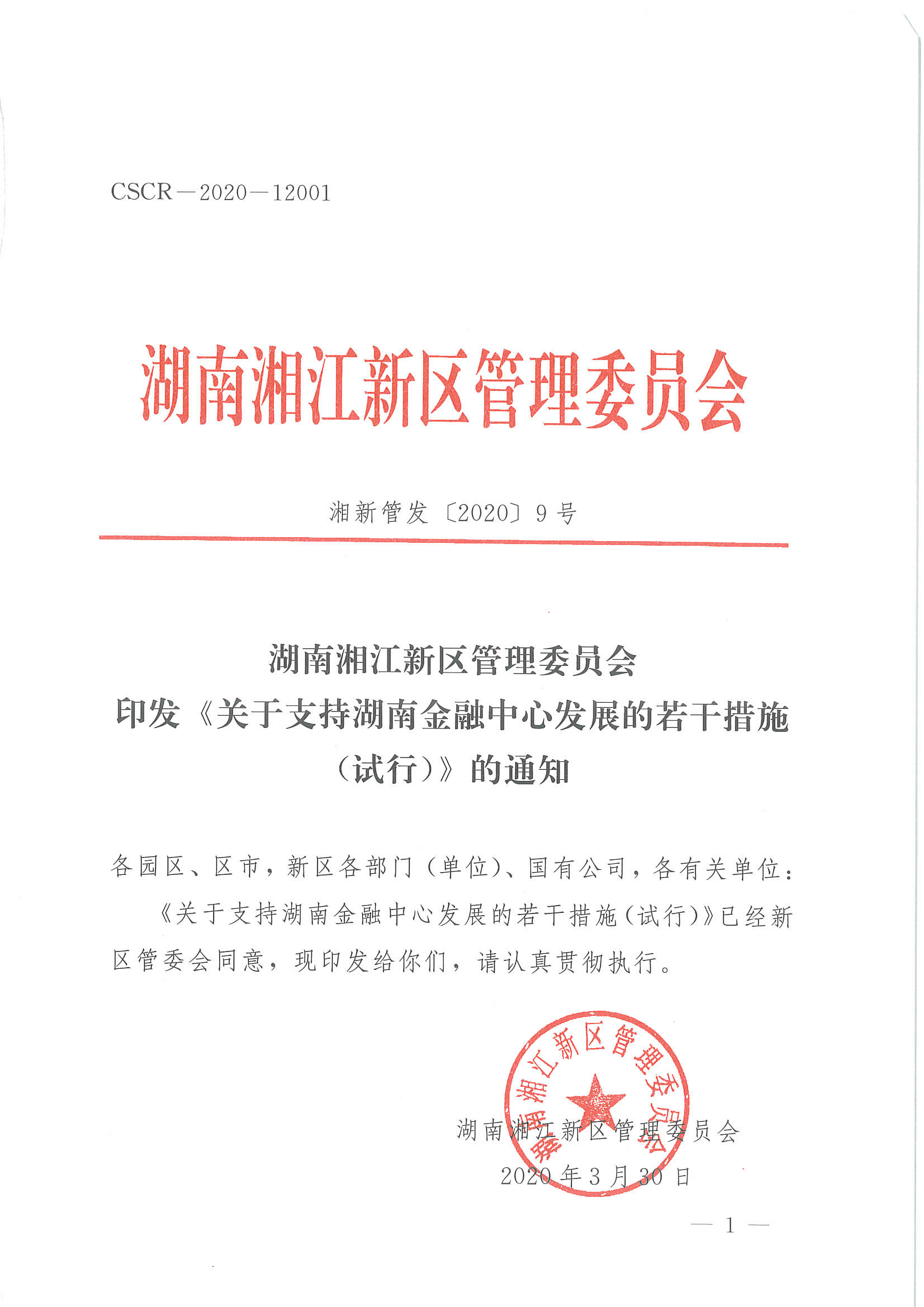 湘新管发〔2020〕9号?印发《关于支持湖南金融中心发展的若干措施(试行)》的通知?